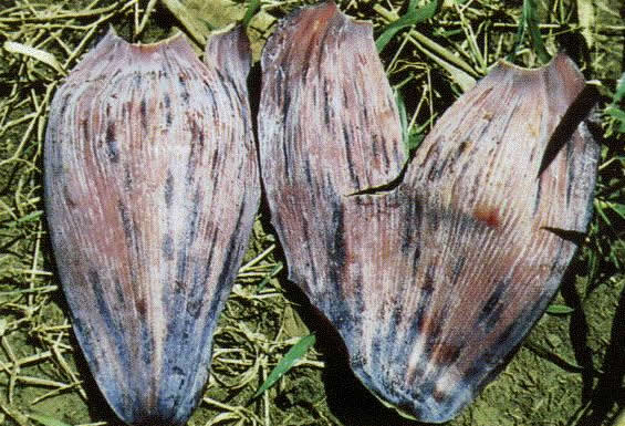 can be seen on the pseudostem. All the kokkan affected plants need not show this