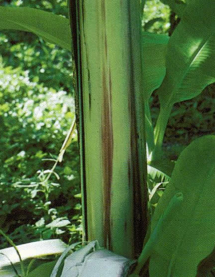 and pseudostem. The affected plants produce only small bunches. This is a virus