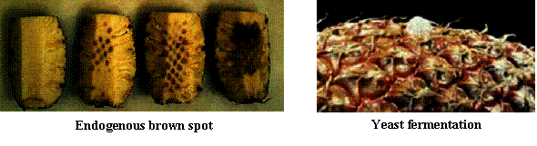 Black rot caused by Ceratocystis results in a black watery rot of the flesh