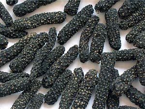 spike about 35 mm long and 5 mm thick, brown or blackish in colour. The product
