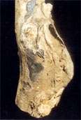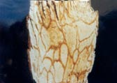 - Affected portion crumbles on gentle pressure