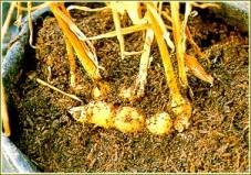 ooze from the vascular strands. Ultimately rhizomes rot.