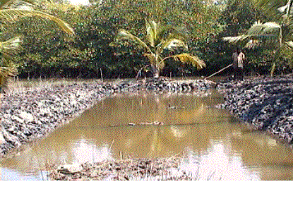as in the case of shrimps. The pond should be constructed in such a way that it